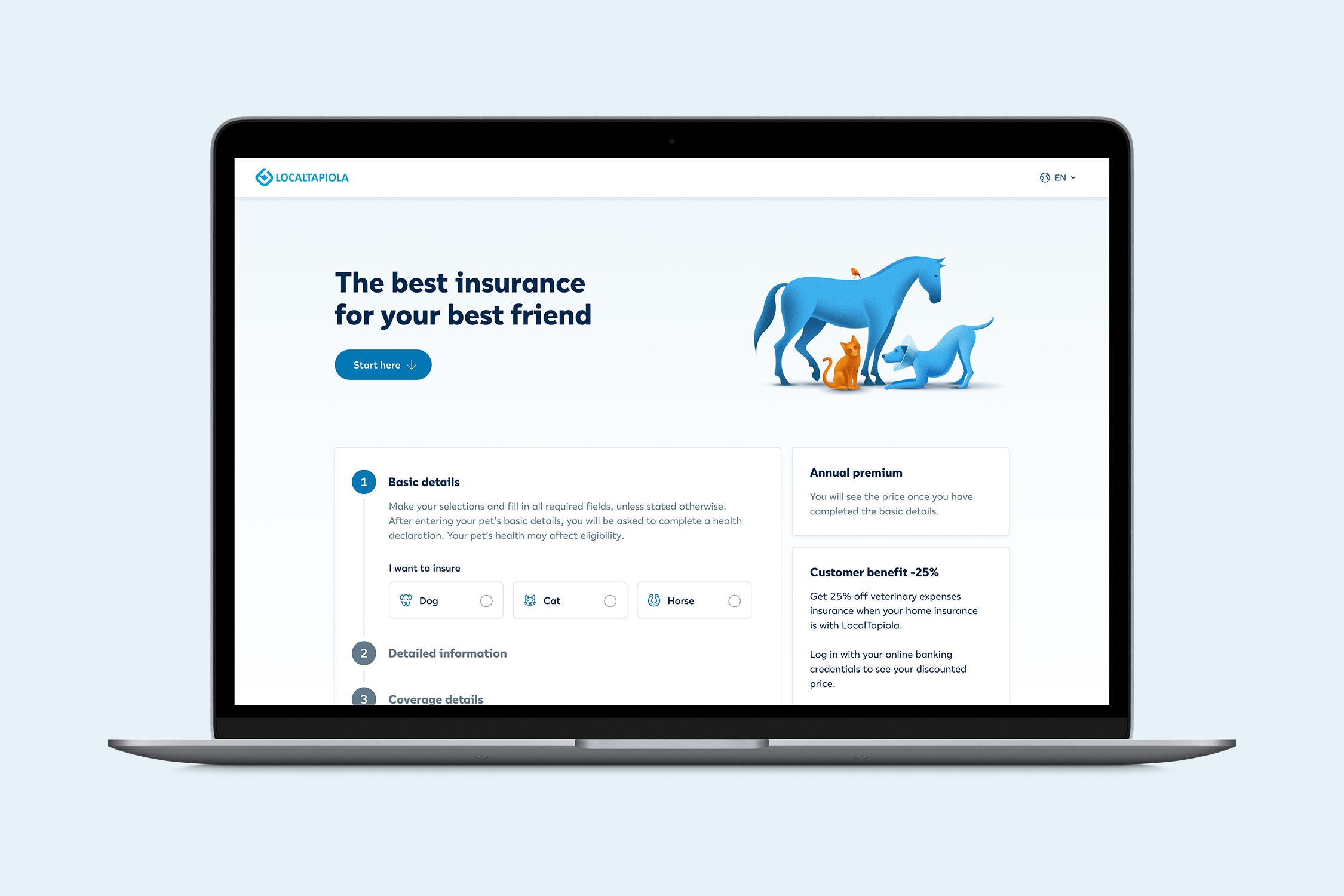 LocalTapiola is a Finnish mutual insurer and wealth manager owned by its 1.6 million customers. The company’s guiding ethos, ‘elämänturva’ (Finnish for ‘lifelong security’), extends well beyond insurance, encompassing health, finance, and wellbeing across every stage of life. In 2018, LocalTapiola embarked on a core system renewal, overhauling online self-services for private customers, from first notice of loss to purchase, as the first phase of a broader, multi-year transformation. Alongside the new core system, several parallel initiatives were set in motion: a mobile app, a design system, and ultimately a brand refresh, complete with a custom typeface and a witty illustrative style. The brand has since continued to evolve through successive iterations.